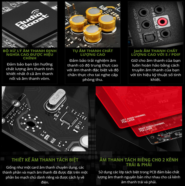 MSI Gen 4 PCI-E là giải pháp truyền dữ liệu PCI-E mới nhất và nhanh nhất với băng thông truyền một chiều 64GB/giây đã tăng gấp đôi so với thế hệ trước. PCIe 4.0 duy trì cả khả năng tương thích ngược. Tối ưu hóa bằng thiết kế áo giáp thép và PCB cấp máy chủ, bạn có thể tận hưởng các thiết bị thế hệ tiếp theo mà không có bất kỳ sự chậm trễ nào.