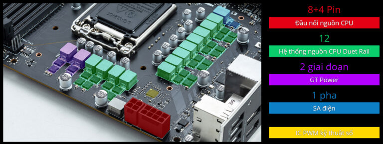 Đầu nối nguồn kép: Đầu nối 8 + 4 chân cung cấp đủ năng lượng ngay cả đối với CPU đa lõi được ép xung.