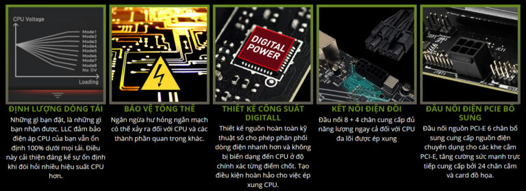 Thiết kế công suất digitall: Thiết kế nguồn hoàn toàn kỹ thuật số cho phép phân phối dòng điện nhanh hơn và không bị biến dạng đến CPU ở độ chính xác từng điểm chốt. Tạo điều kiện hoàn hảo cho việc ép xung CPU.
