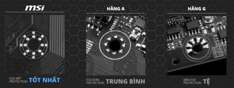 Bảo vệ ESD kép tăng gấp đôi lớp tiếp đất xung quanh các lỗ bắt ốc của bo mạch, ngăn chặn sự phóng điện tĩnh làm hỏng bo mạch chủ.